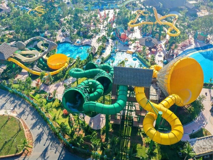 Công viên nước được thiết kế theo cảm hứng nghệ thuật múa rối nước, trải rộng khoảng 10 ha với 14 tổ hợp trò chơi, 40 đường trượt, bể tạo sóng rộng 4.628 m², sông lười dài 500 m và đặc biệt là làn trượt ống đũa song song dài 228,22 m, lần đầu xuất hiện tại Đông Nam Á. Khu vui chơi nước cũng có các khu vực dành riêng cho trẻ nhỏ, giúp cả gia đình có thể vui chơi an toàn và trọn vẹn.