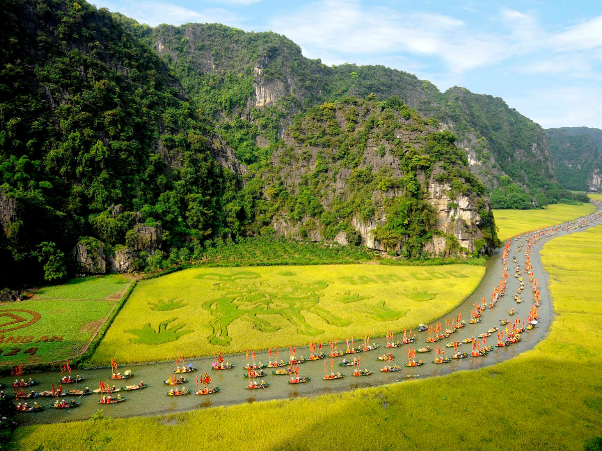 從農曆一月到三月,天氣微涼,樹木抽出嫩綠的新芽,寧平 (Ninh Binh) 披上了新年伊始的寧靜氣息。這也是節慶熱鬧的季節,有拜頂寺節 (Le hoi chua Bai Dinh) 和長安節 (Le hoi Trang An),帶來莊嚴的氛圍,既能賞景,又能融入初春的朝聖人潮。