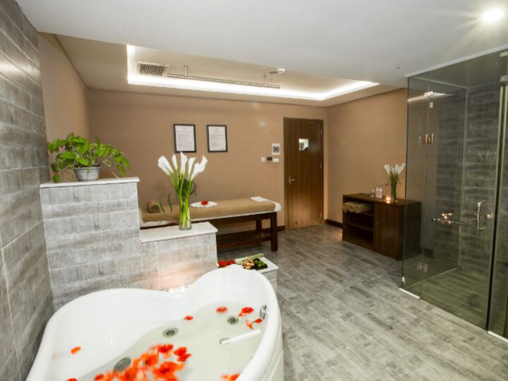 Đặc biệt, khách sạn cung cấp dịch vụ đưa đón miễn phí đến chùa Tam Chúc vào sáng sớm và chiều tối, rất tiện lợi cho du khách hành hương. Nhà hàng chay tại đây phục vụ thực đơn thanh đạm, phù hợp với không khí tĩnh tại của vùng đất linh thiêng.