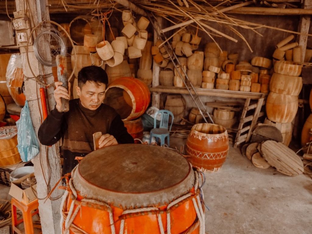 Mỗi chiếc trống Đọi Tam đều được làm hoàn toàn thủ công với các công cụ chuyên biệt, từ tang trống đến da trống, tạo nên âm thanh trầm hùng đặc trưng gắn liền với lễ hội, nghi lễ và đời sống tâm linh của người Việt. Hàng năm, các nghệ nhân dù làm việc khắp nơi cũng trở về quê hương dự ngày giỗ tổ nghề và tham gia các trò chơi dân gian như thi bưng trống, căng mặt trống, duy trì truyền thống văn hóa đặc sắc.