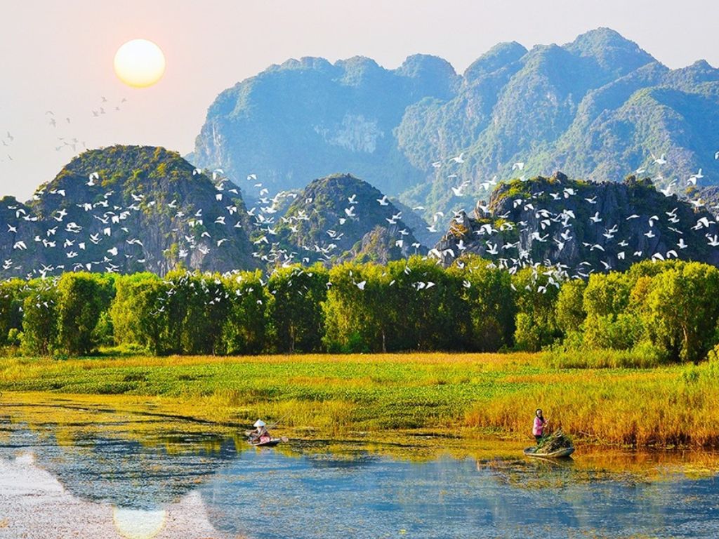 Thời gian lý tưởng để khám phá và check-in Ninh Bình là từ tháng 3 đến tháng 5, khi những cánh đồng lúa còn xanh mướt trải dài giữa thung lũng, hay từ tháng 5 đến tháng 6, khi sắc vàng óng ánh của mùa lúa chín nhuộm rực cả không gian. Khi ấy, từng dòng sông uốn lượn giữa những dãy núi đá vôi sừng sững như được khoác lên màu áo mới, phản chiếu ánh nắng dịu vàng tạo nên bức tranh thiên nhiên vừa hùng vĩ vừa nên thơ.