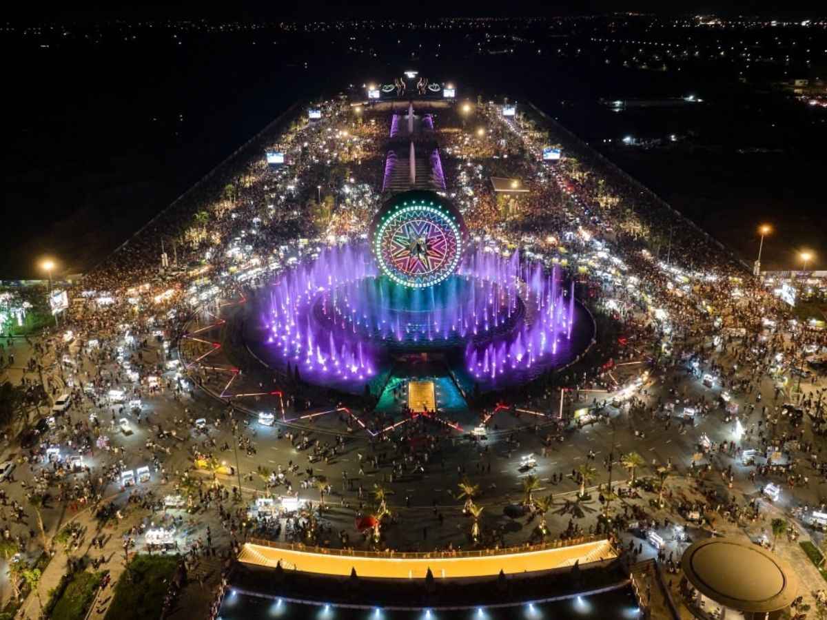 Buổi tối trên đường về, bạn có thể rẽ qua Quảng trường Thời Đại thuộc khu đô thị Sun Urban City Hà Nam, nằm ngay mặt đường QL1A. Đây là điểm dừng chân rất hợp lý để nghỉ ngơi, ăn tối nhẹ và chụp ảnh ban đêm trước khi về tới Hà Nội. Không gian quảng trường về đêm được thắp sáng rực rỡ, nổi bật với đài phun nước, các công trình biểu tượng và hệ thống đèn trang trí hiện đại, đặc biệt đẹp vào dịp Tết khi được trang hoàng thêm tiểu cảnh xuân và khu check in chủ đề năm mới.